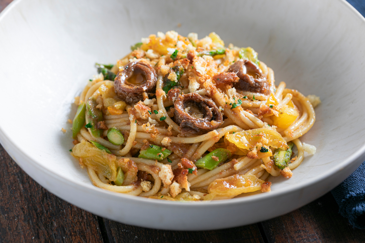 Categoria: Secondi piatti Ingredienti Agnello 800 g spalla disossataCarciofi 800 g (da pulire)Patate 600 gCipollotto fresco 400 g (da pulire)Aglio 0,5 testaBrodo vegetale 700 gVino bianco secco 70 gConcentrato di pomodoro 1 cucchiaioTimo q.b.Alloro q.b.Prezzemolo q.b.Salvia q.b.Burro 60 gOlio extravergine d’oliva q.b.Sale fino q.b.Pepe nero q.b. Preparazione Spezzatino di agnello con carciofi, passo 1 Per […]